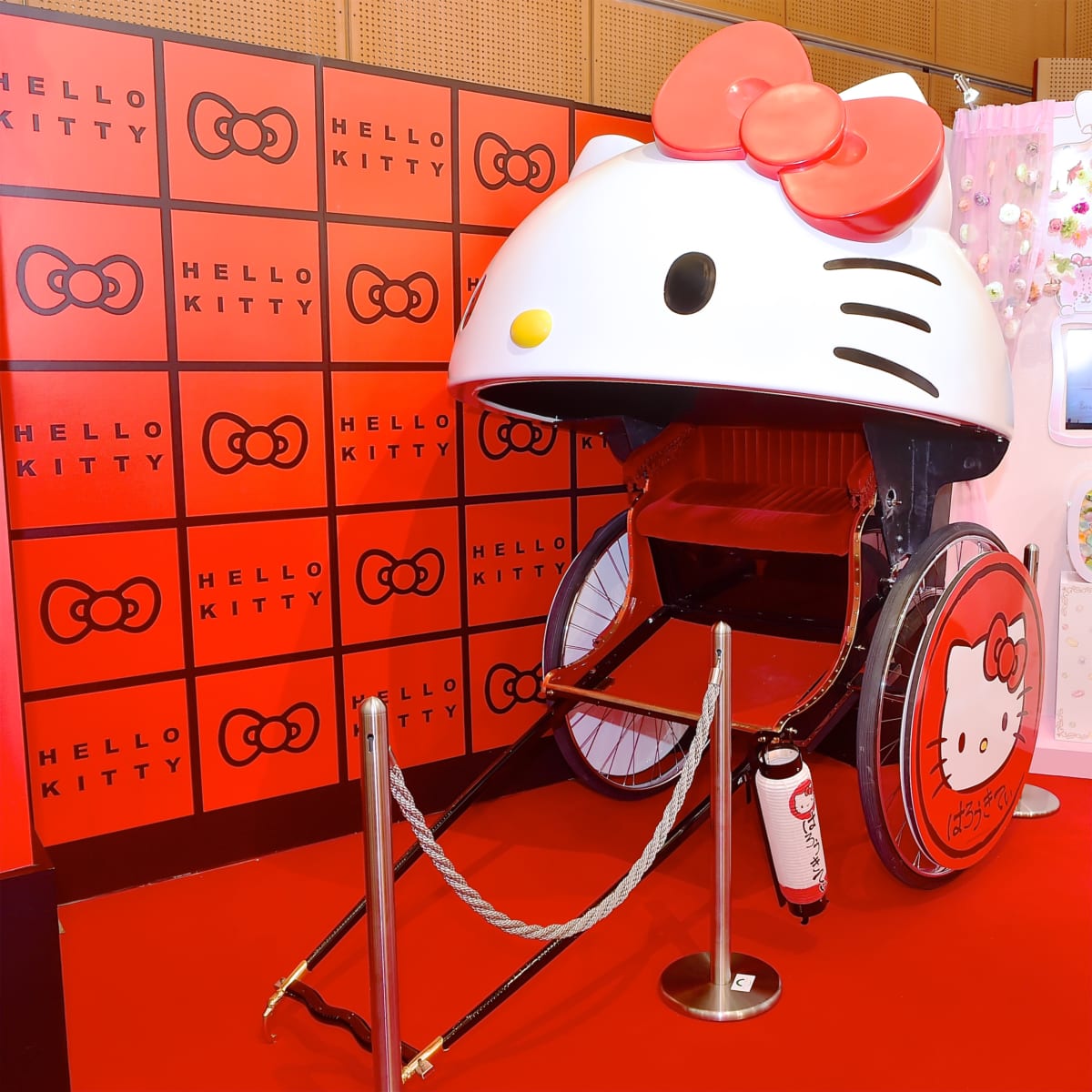 がオープンすることを記念して、ハローキティ仕様の人力車が