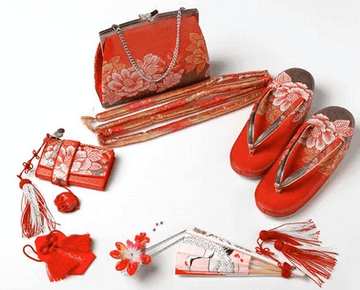 まずは巾着やショールなどからかな?アクセサリー類もつけると素敵です。着物の色と合わせてもいいし、