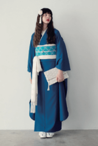 大人っぽい彼女には青色の着物はぴったりだと思います。