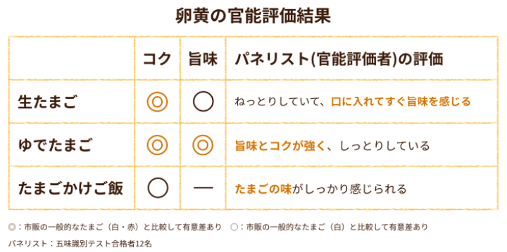 卵黄の質とおいしさの関係についての研究を重ね、新旨味原料(特許取得)を発見しました。