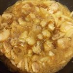 玉ねぎと鶏肉を炒め、