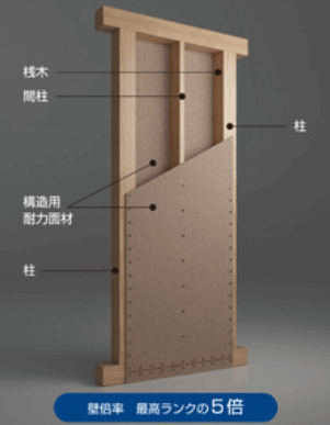 アイ工務店の壁は、最高ランクの「5倍耐力壁」。