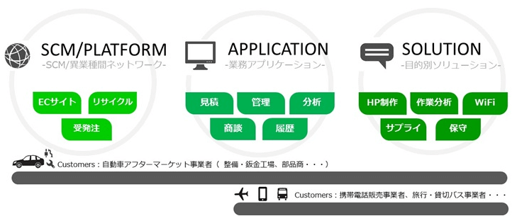 事業内容自動車アフターマーケットを中心に幅広い業種・業界の現場業務を支援するソフトウエア・ITソリューション&各種サービスを提供(業務アプリケーション、異業種間連携プラットフォーム、リサイクル部品マーケットプレイス、 自動車関連コンテンツの開発等)
