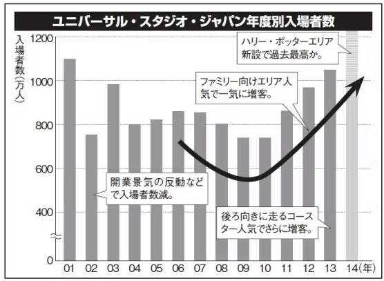 (画像引用元:USJのV字回復、勝因は映画専門パークからの脱却)