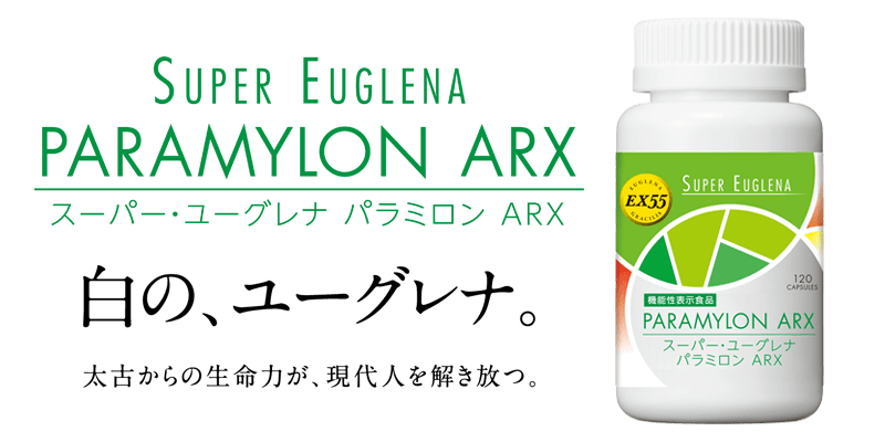 スーパー・ユーグレナ パラミロンARXは、株式会社ユーグレナと共同開発した白のミドリムシを原料にしたサプリメントです。